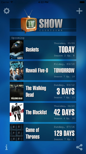 قم بتخصيص تصميم التطبيق ليناسب تفضيلاتك واستقبل إشعارات حول حلقات جديدة. سواء كنت من محبي Game of Thrones، Better Call Saul، The Walking Dead، Star Trek Discovery، The Voice، Silicon Valley، Lethal Weapon، Stranger Things، Always Sunny، Sherlock، Blacklist، Homeland، أو 24، يوفر تطبيق إدارة البرامج التلفزيونية لك جميع البرامج التلفزيونية، وتواريخ البث، والمزيد في تطبيق واحد مريح.